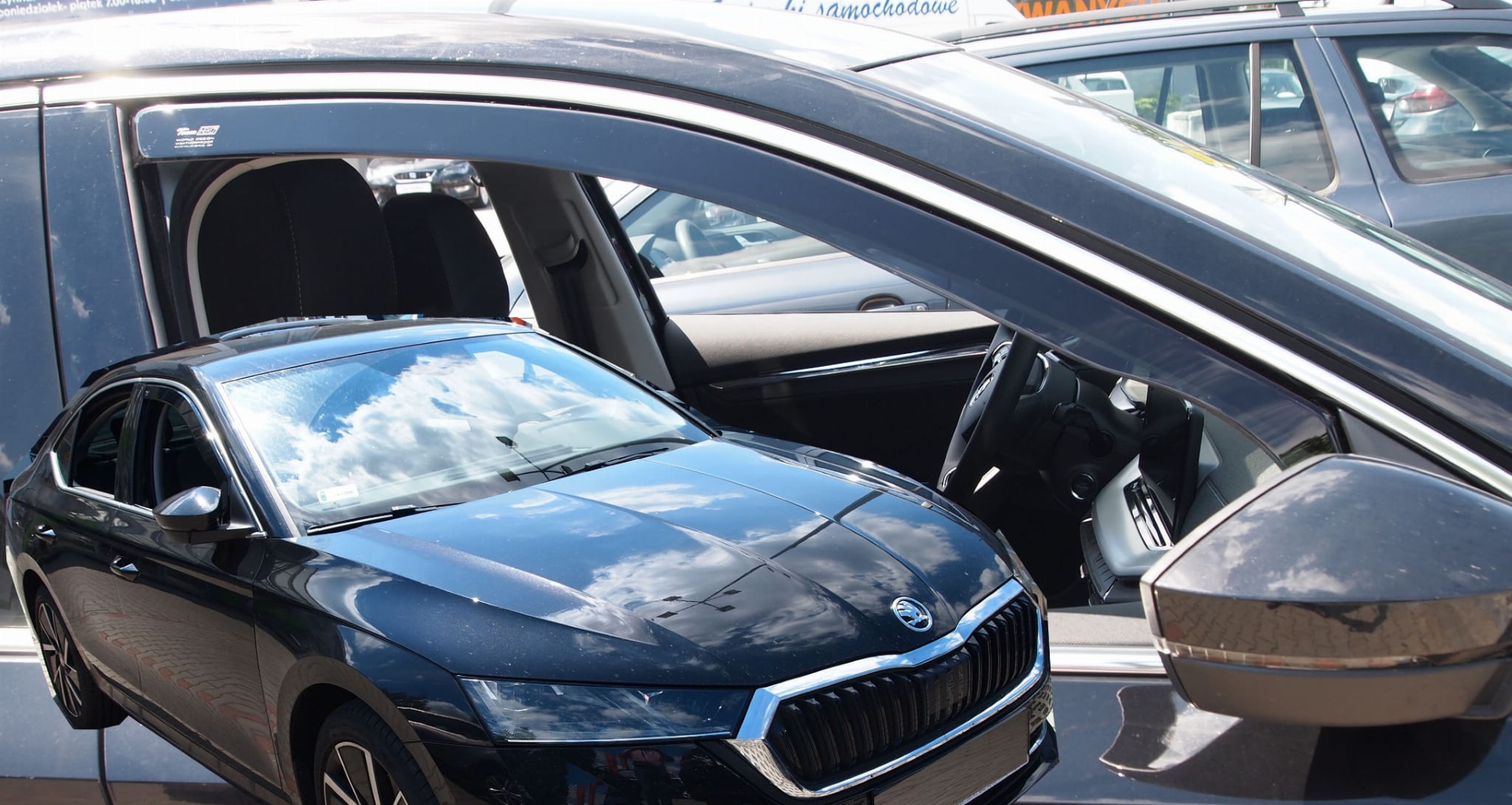 Ανεμοθραύστες παραθύρων αεροδυναμικού σχεδιασμού από την εταιρία HEKO, κατασκευασμένοι από ειδικό πλαστικό υψηλής ποιότητας και εξαιρετικής αντοχής σε σκούρο φιμέ, κατάλληλοι για τις μπροστά πόρτες του SKODA OCTAVIA COMBI/5D 2020+.