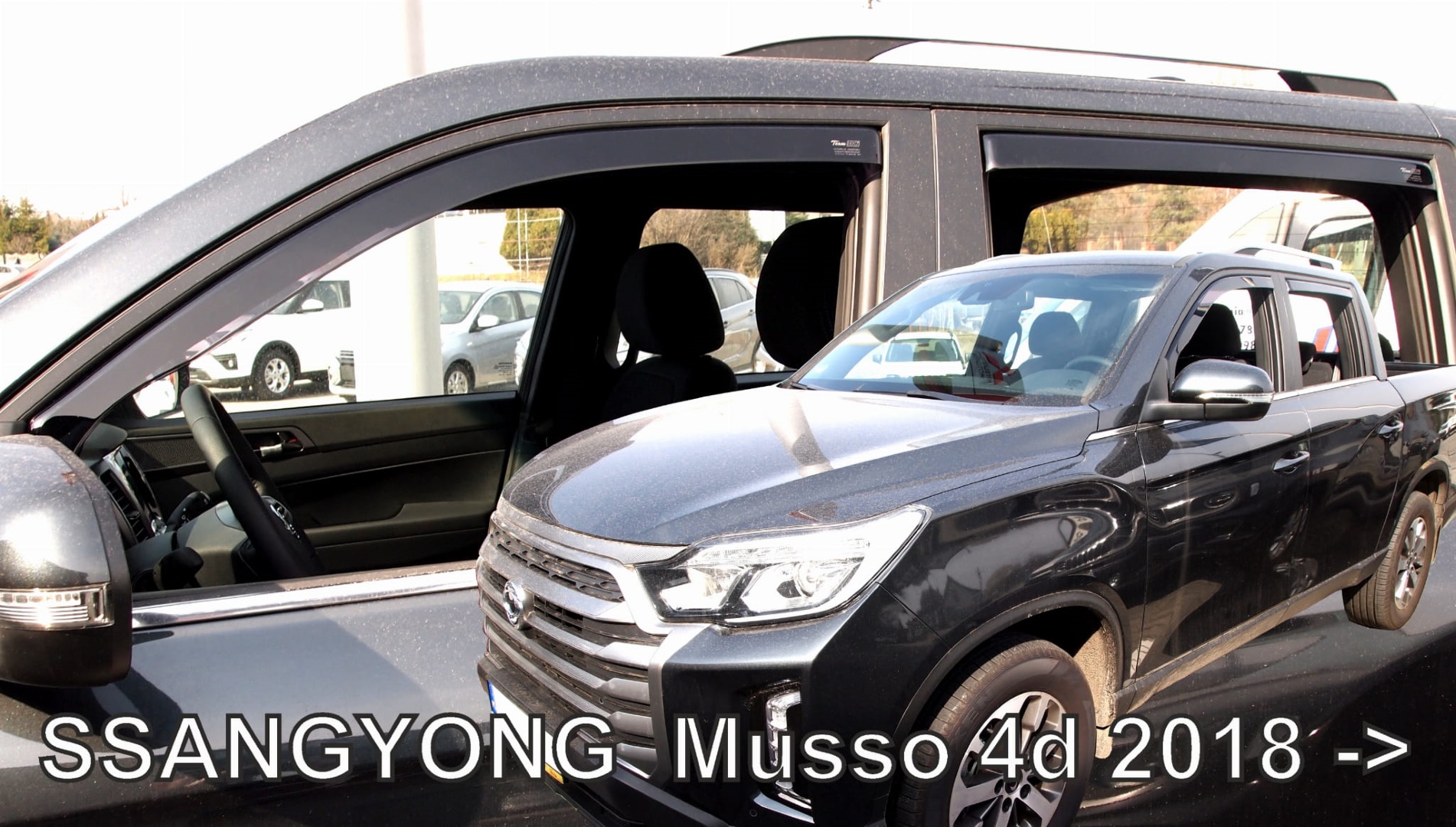 Ανεμοθραύστες παραθύρων αεροδυναμικού σχεδιασμού από την εταιρία HEKO, πολωνικής προέλευσης, κατασκευασμένοι από ειδικό πλαστικό υψηλής ποιότητας και εξαιρετικής αντοχής σε σκούρο φιμέ, κατάλληλοι για τις μπροστά πόρτες του SSANGYONG MUSSO 4D 2018+. Χάρις στην πολύ λεπτή βάση τους, τοποθετούνται κολλητοί/χωνευτοί μέσα στην υποδοχή του τζαμιού (τσιμούχα παραθύρου) με κλιπς ή ταινία διπλής όψης (περιλαμβάνονται στη συσκευασία), χωρίς να επηρεάζουν καθόλου την εύρυθμη λειτουργία του τζαμιού.