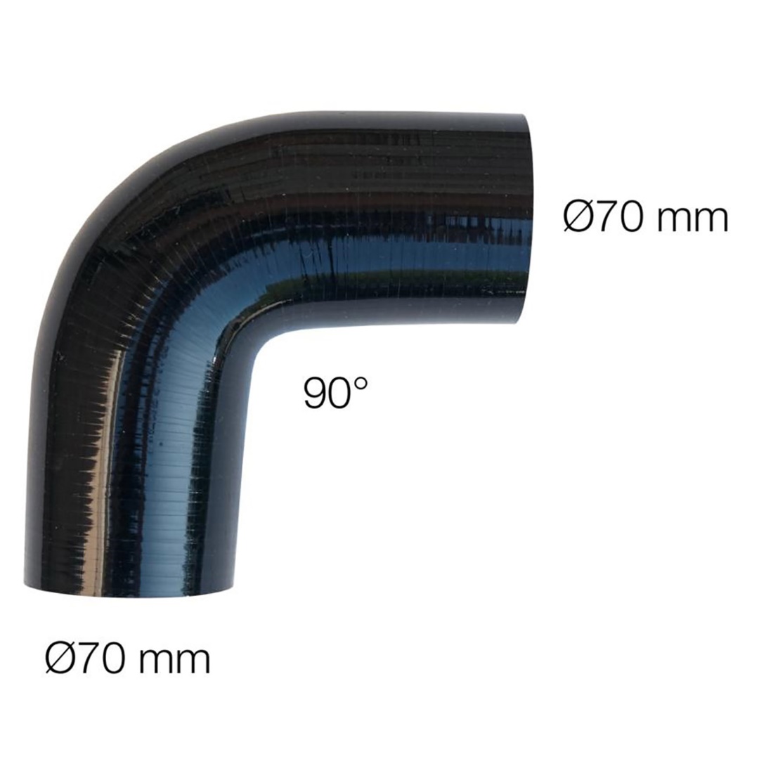 Γωνία σιλικόνης μαύρη Φ70 90 μοίρες. Ιδανική για χρήση σε σωλήνες και γωνίες σιλικόνης. Μοντέλο: SR9015 (Simoni Racing).