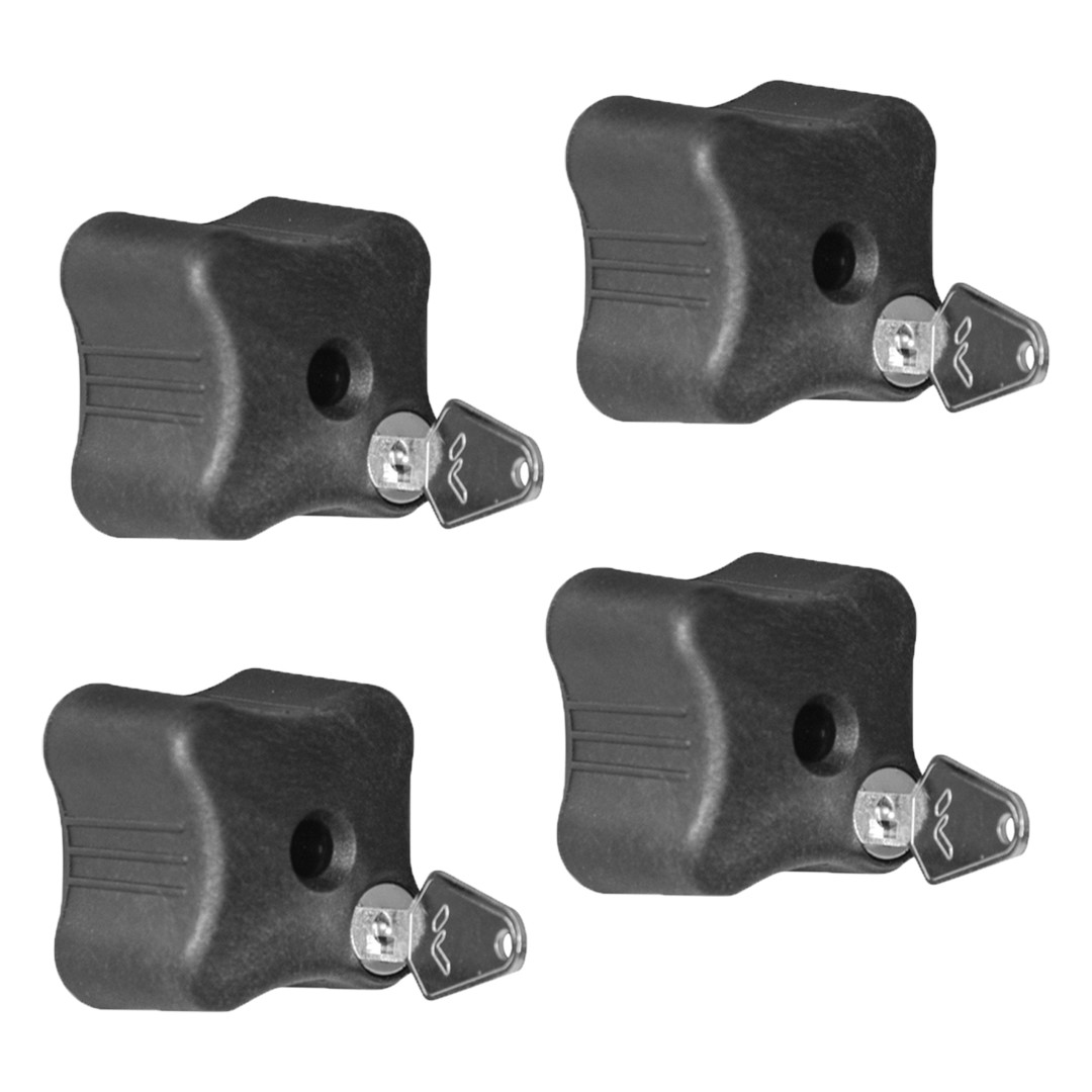 Εργονομικό αντικλεπτικό πομόλο/ροδέλα για βάσεις ποδηλάτου Menabo, σχεδιασμένο για ασφαλή και εύκολη χρήση. Περιλαμβάνει 4 τεμάχια και συνοδεύεται από κλειδί για την αυξημένη προστασία του εξοπλισμού σας.