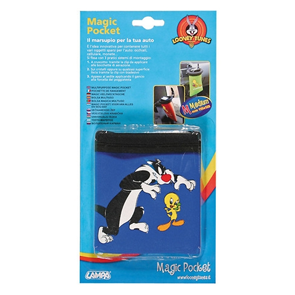 Μαγική Θήκη (Tweety/Silvester). Κατάλληλη για την σωστή τοποθέτηση των διαφόρων αντικειμένων που είναι σκορπισμένα στο αυτοκίνητο. Μπορεί εύκολα να εγκατασταθεί στο ταμπλό, στο παρμπρίζ ή σε οποιαδήποτε άλλη επιφάνεια, χρησιμοποιώντας τα 3 κιτ τοποθέτησης. Διατίθεται σε διάφορα σχέδια και χρώματα.