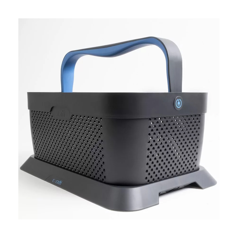 Καλάθι μεταφοράς προϊόντων σε μπλε χρώμα, πλαστικό με αντιολισθητική βάση και λαβή από την εταιρία RATI. Έξυπνο καλάθι αυτοκινήτου για ψώνια και υπαίθριες δραστηριότητες, με προσαρμογέα στερέωσης για το πορτμπαγκάζ, τοποθέτηση σε κάθε επιφάνεια, κατασκευασμένο από 94% ανακυκλωμένο υλικό.