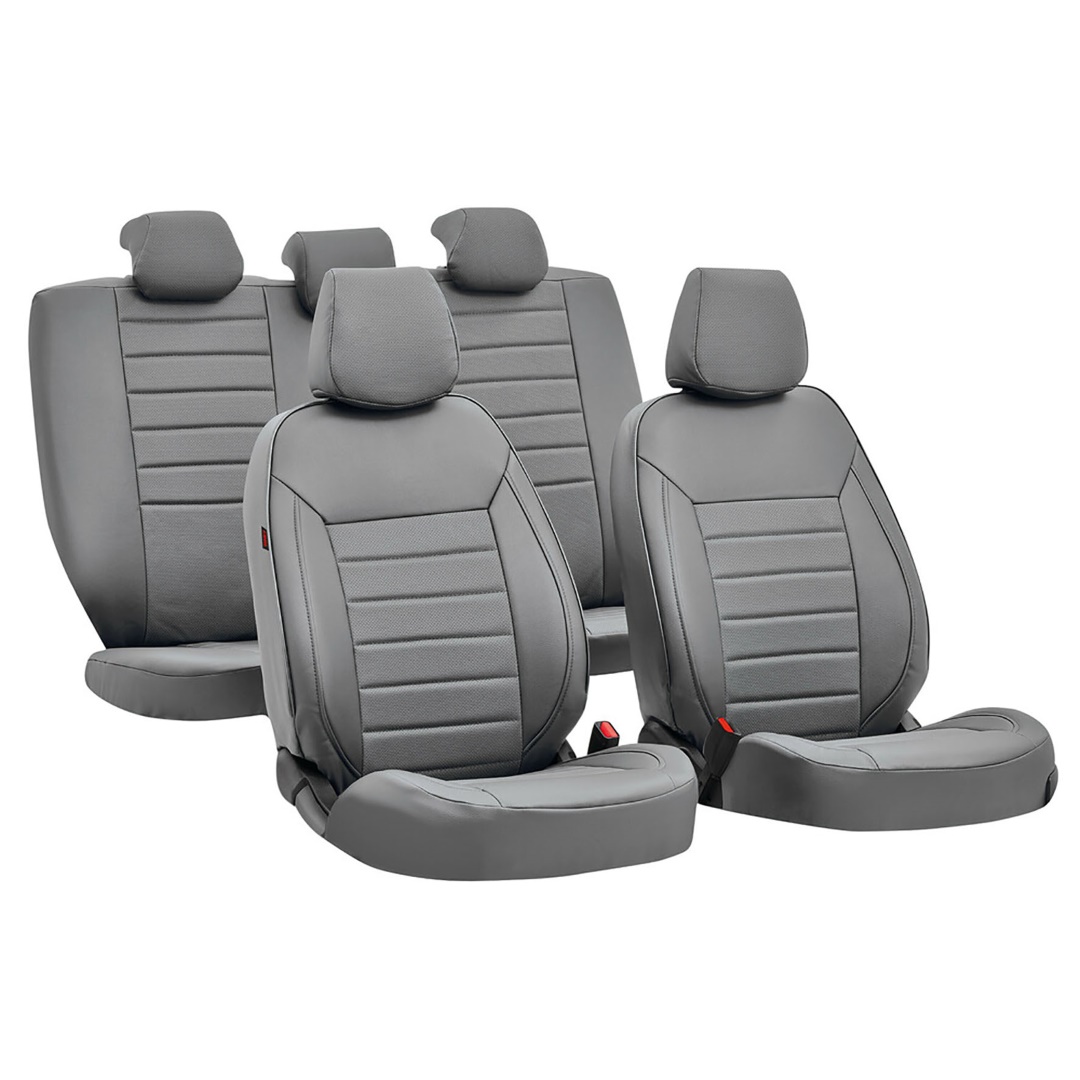 Καλύμματα καθισμάτων Lampa Luxury Leatherette δερμάτινα αφρώδες γκρι, συναρμολογούμενα σε σύνολο 4 τεμαχίων.