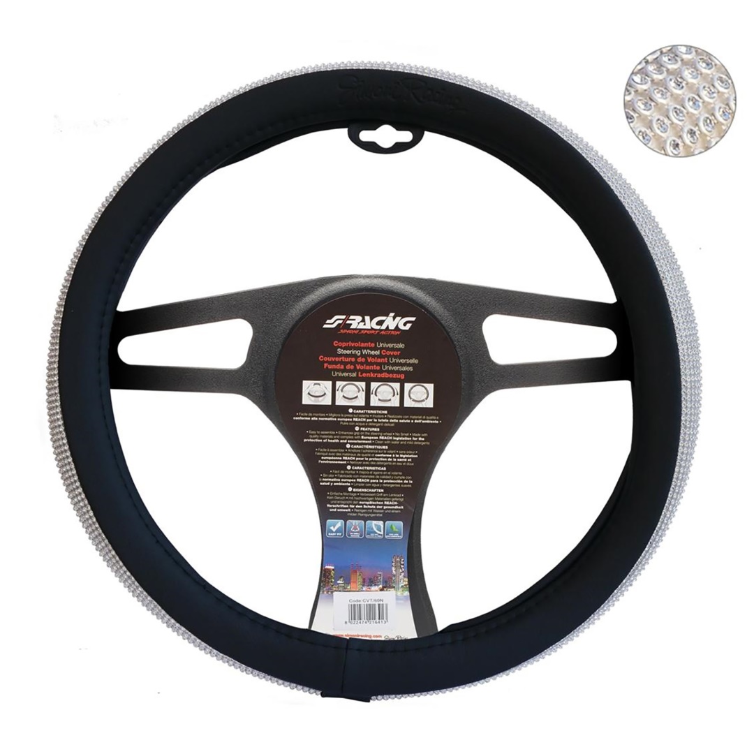 Simoni Racing Κάλυμμα Τιμονιού Αυτοκινήτου με Διάμετρο 37-39εκ. από Δερματίνη Μαύρο με Στρας