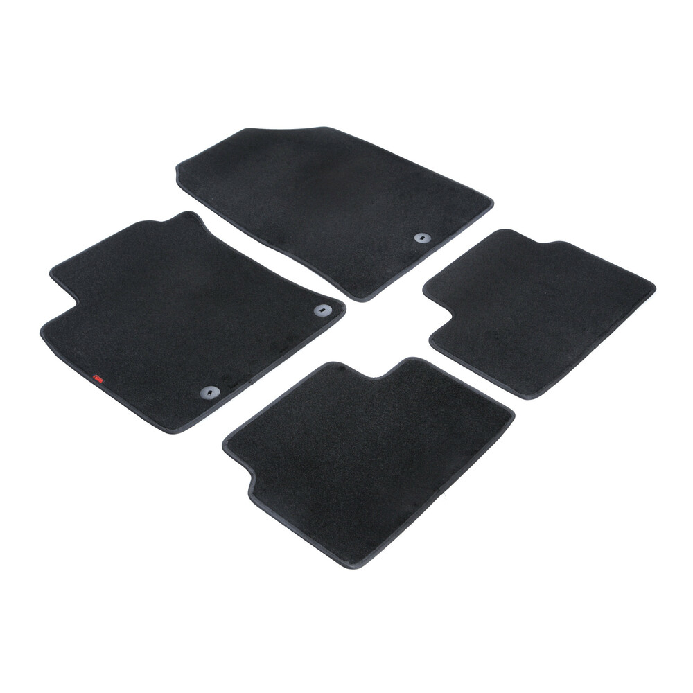 Πατάκια αυτοκινήτου από την εταιρία LAMPA, ιταλικής προέλευσης, κατασκευασμένα από υψηλής ποιότητας μοκέτα – 100% πολυπροπυλένιο – σε μαύρο χρώμα με περιμετρικό φινίρισμα από βελούρ ρέλι (απομίμηση βελούδου), σχεδιασμένα για να ταιριάζουν ακριβώς στις διαστάσεις του δαπέδου του εκάστοτε οχήματος.