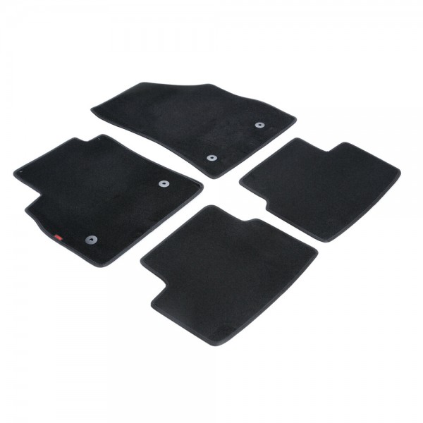 Πατάκια αυτοκινήτου από την εταιρία LAMPA, ιταλικής προέλευσης, κατασκευασμένα από υψηλής ποιότητας μοκέτα – 100% πολυπροπυλένιο – σε μαύρο χρώμα με περιμετρικό φινίρισμα από βελούρ ρέλι.