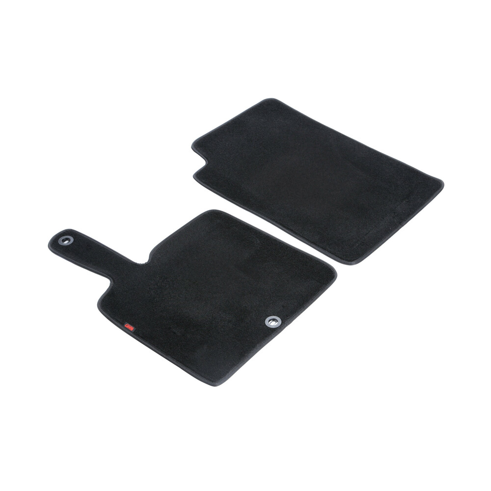 Πατάκια αυτοκινήτου από την εταιρία LAMPA, ιταλικής προέλευσης, κατασκευασμένα από υψηλής ποιότητας μοκέτα – 100% πολυπροπυλένιο – σε μαύρο χρώμα με περιμετρικό φινίρισμα από βελούρ ρέλι (απομίμηση βελούδου), σχεδιασμένα για να ταιριάζουν ακριβώς στις διαστάσεις του δαπέδου του εκάστοτε οχήματος. Είναι αδιάβροχα και διαθέτουν αντιολισθητικό πάτο ενισχυμένο με gel για καλύτερη πρόσφυση στο δάπεδο, καθώς και κουμπιά στερέωσης fix-points για οχήματα με αντίστοιχες εργοστασιακές υποδοχές.
