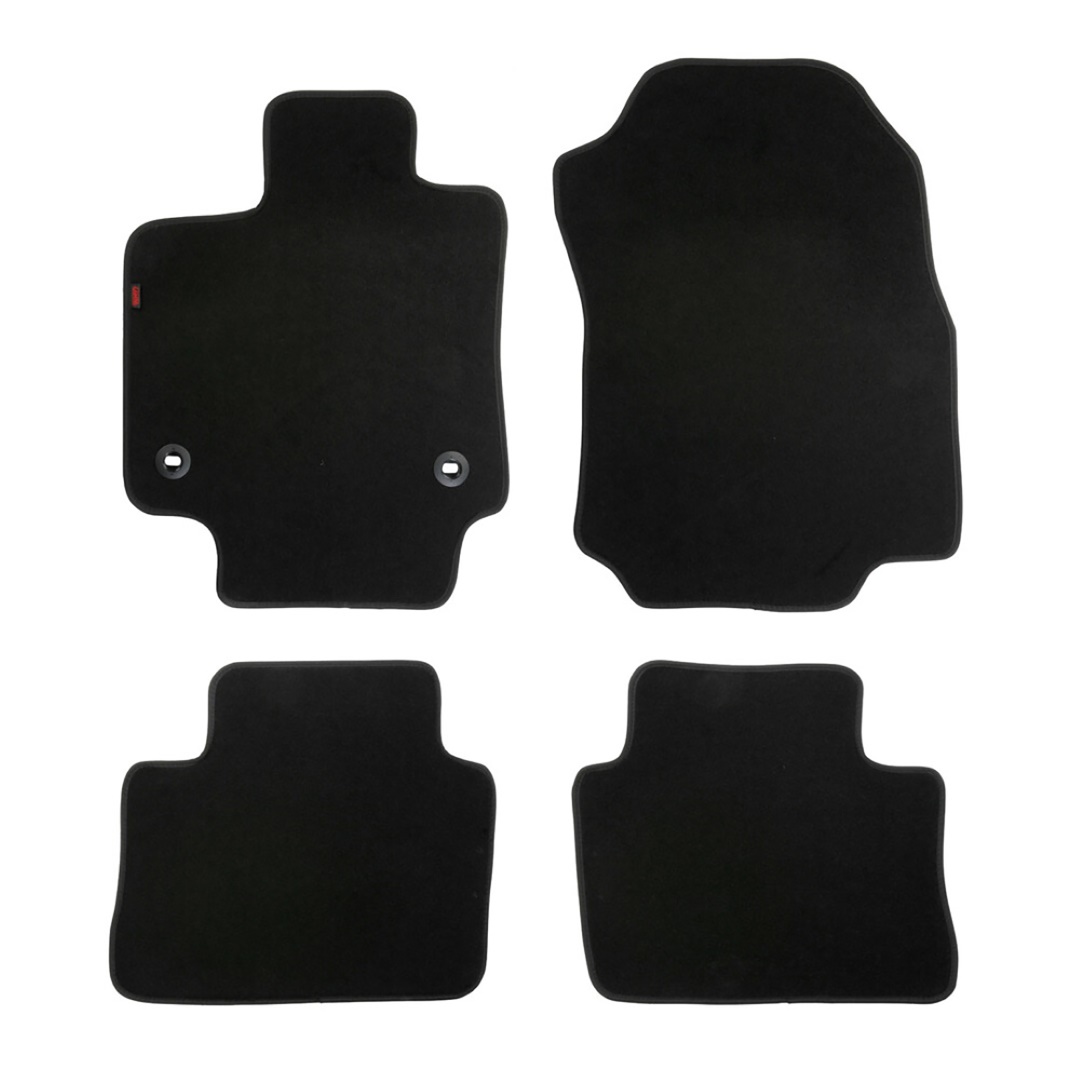 Πατάκια αυτοκινήτου για TOYOTA RAV 4 5D από την εταιρία LAMPA, ιταλικής προέλευσης. Κατασκευασμένα από υψηλής ποιότητας μοκέτα (100% πολυπροπυλένιο) σε μαύρο χρώμα με περιμετρικό φινίρισμα από βελούρ ρέλι.