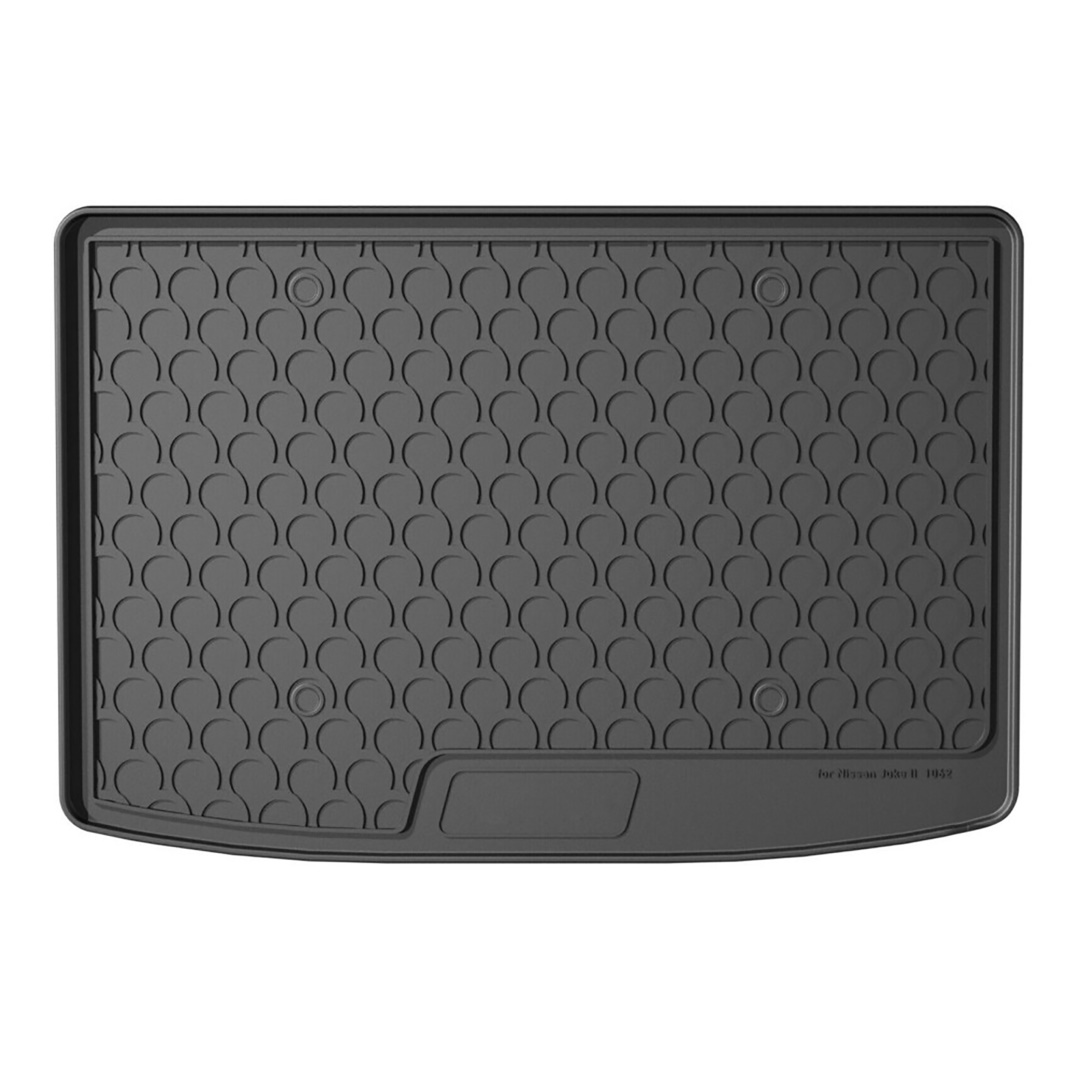 Πατάκι σκάφη πορτ μπαγκάζ NISSAN JUKE 12/2019+ της σειράς SUMISURA TRUNK MAT από την εταιρεία LAMPA, κατασκευασμένο από υψηλής ποιότητας άοσμο, ανακυκλώσιμο, οικολογικό και μη τοξικό συνθετικό λάστιχο σε μαύρο χρώμα.
