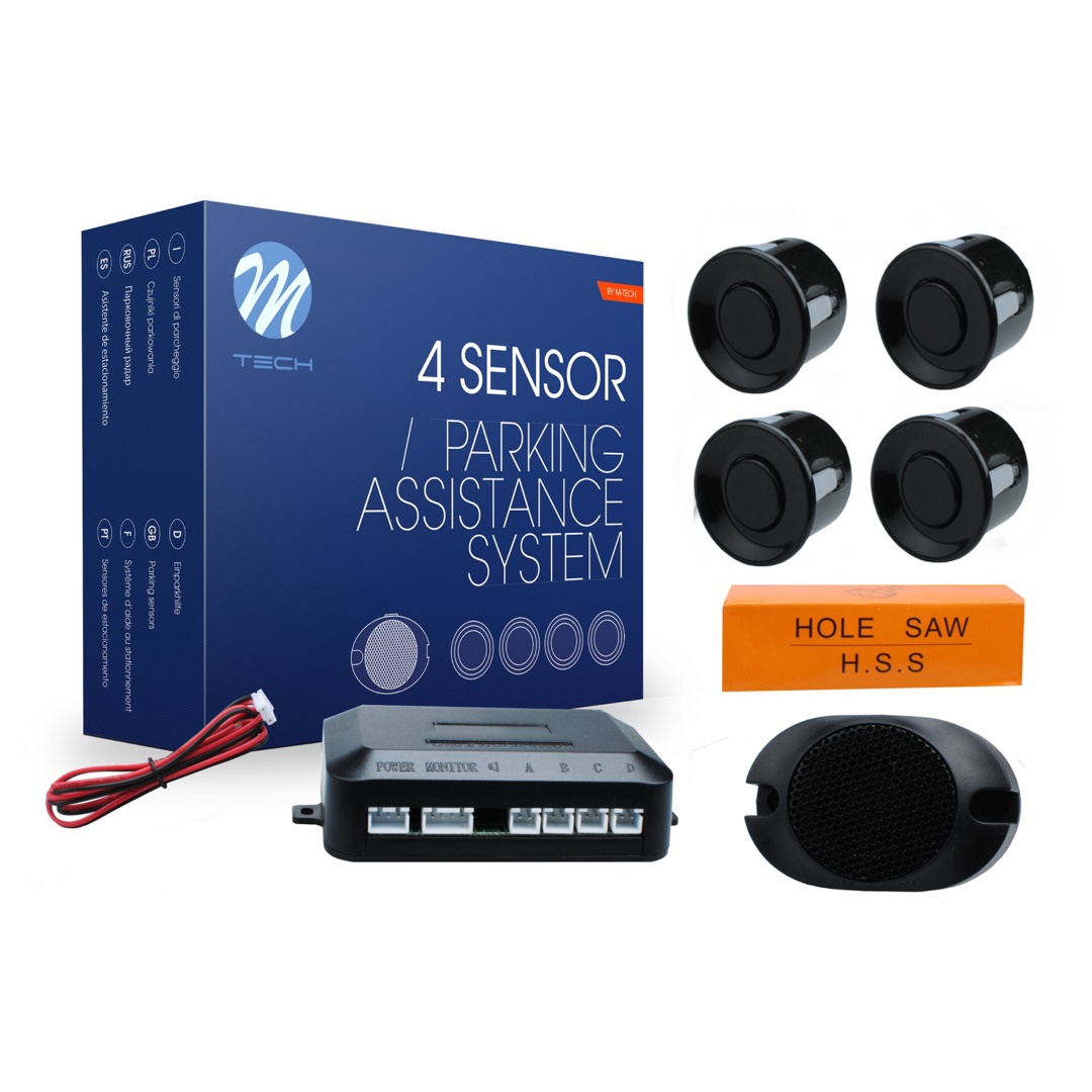 Σύστημα παρκαρίσματος 9-15V με 4 αισθητήρες (μαύρο) 21,5mm και buzzer (μόνο ήχος) M-TECH. Το σύστημα διαθέτει κεντρική μονάδα σύνδεσης καλωδίων και buzzer που παράγει μόνο ήχο. Η τοποθέτηση των τεσσάρων αισθητήρων γίνεται στο πίσω μέρος του οχήματος, επάνω στον προφυλακτήρα. Η ενεργοποίηση του buzzer ξεκινάει με τη χρήση της όπισθεν. Η συσκευασία περιλαμβάνει οδηγίες τοποθέτησης.