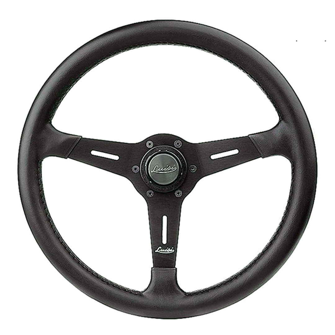 Τιμόνι αυτοκινήτου της σειράς VINTAGE από την εταιρία LUISI, ιταλικής προελεύσεως, κατασκευασμένο από πολυουρεθάνη και μεταλλική μαύρη λάμα. Διαθέτει λαβή με λεία υφή και 3 μεταλλικές ακτίνες σε ίσια γραμμή. Έχει universal εφαρμογή, για να ταιριάζει στα περισσότερα μοντέλα αυτοκινήτων και προσφέρει ασφαλές, άνετο κράτημα, προσδίδοντας παράλληλα μία μοναδική κομψότητα στο εσωτερικό του οχήματος.