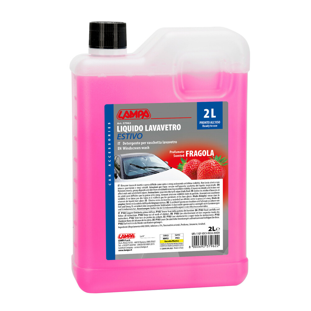 Περιγραφή προϊόντος: Υγρό υαλοκαθαριστήρων Lampa Summer Screen Wash με άρωμα φράουλα, έτοιμο προς χρήση, σε συσκευασία 2000ml.