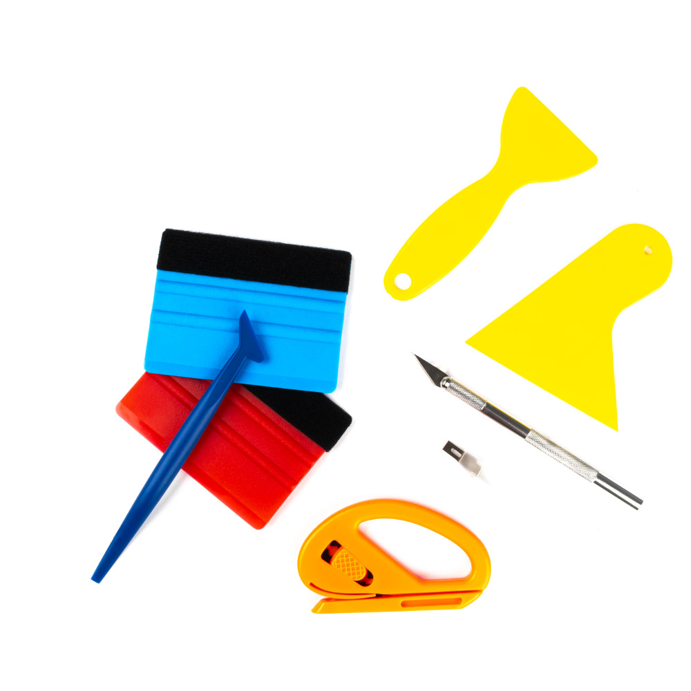 Το σετ περιλαμβάνει εργαλεία κατάλληλα για όλες τις συνθήκες και είναι ιδανικό για την εφαρμογή χρωματισμού παραθύρων και οικοδομικών μεμβρανών.