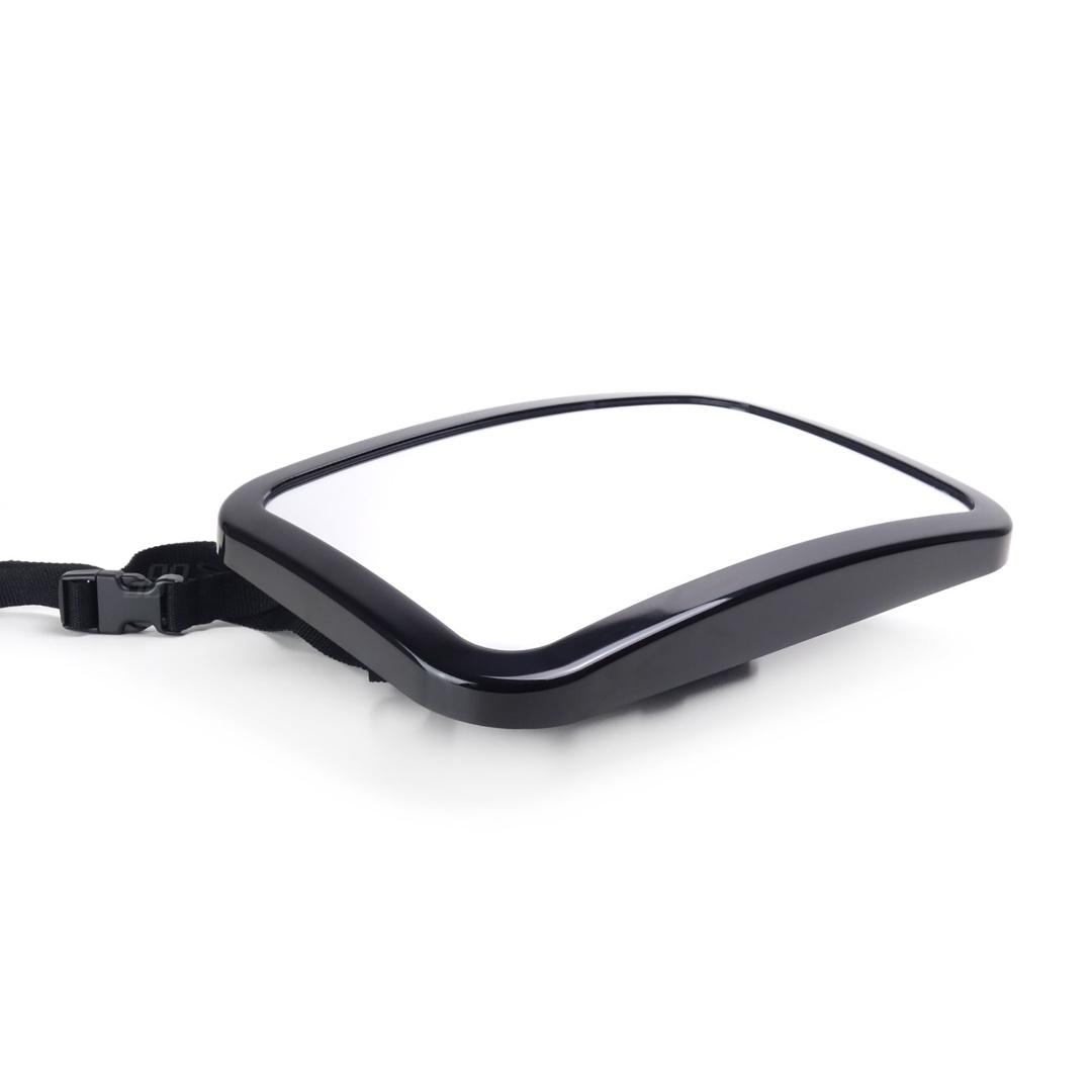 Ο καθρέφτης είναι κατασκευασμένος από πλάστικό, εξασφαλίζοντας ότι δεν υπάρχει κίνδυνος να σπάσει ή να κοπεί το παιδί. Διαθέτει 4 ιμάντες που συνδέονται κάθετα και οριζόντια, συγκρατώντας σταθερά το προσκέφαλο χωρίς να χαλαρώνουν. Δεν υπάρχει περίπτωση να γλιστρήσει ο καθρέφτης και να πέσει. Διαθέτει δυνατότητα περιστροφής 360°.