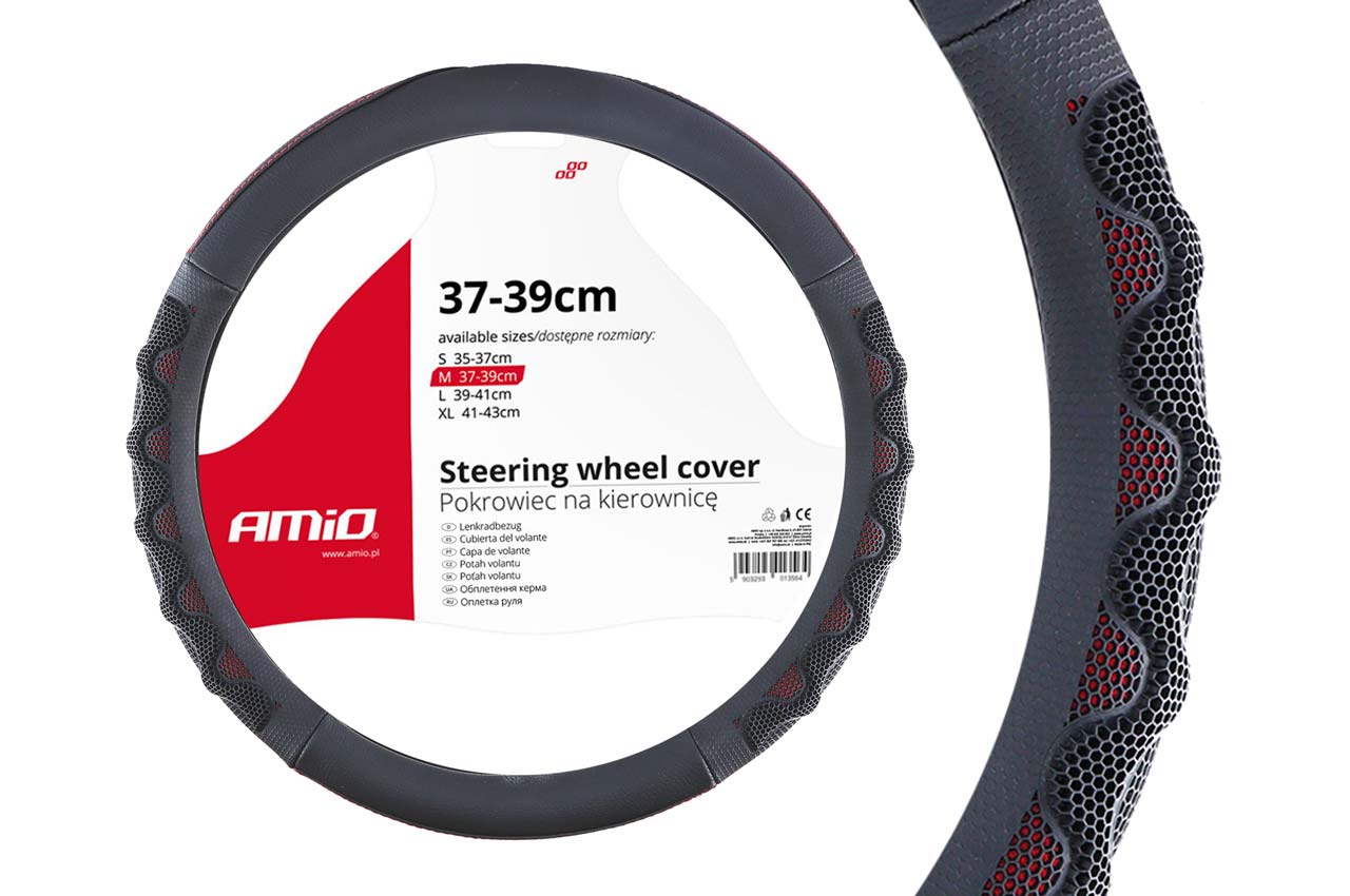 AMiO Κάλυμμα Τιμονιού Αυτοκινήτου SWC-25 με Διάμετρο 37-39εκ. Συνθετικό Μαύρο/Κόκκινο /AM