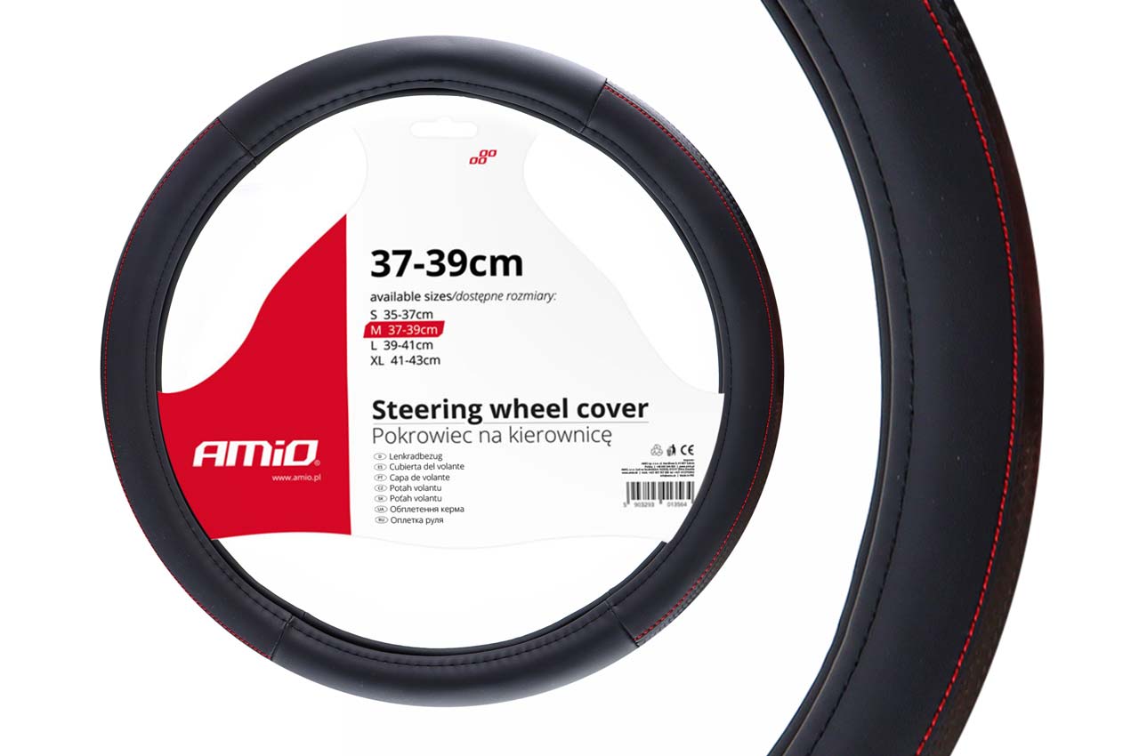 Καλύμματα Τιμονιού 37/39CM SWC-28 σε μαύρο χρώμα με κόκκινη ραφή.