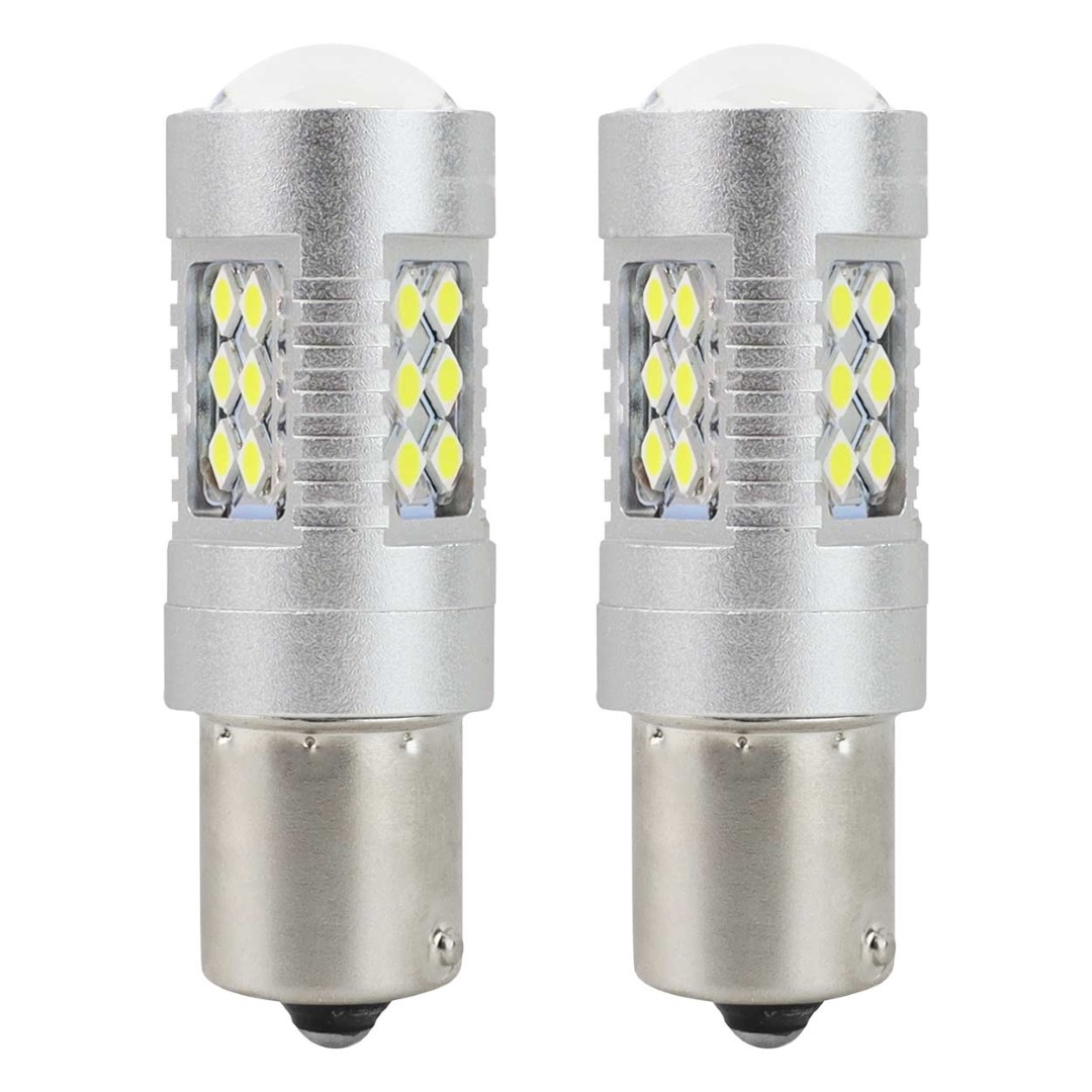 Συγκρότημα δύο υψηλής ποιότητας λαμπτήρων P21W με 24 ισχυρές διόδους LED SMD. Ιδανική αντικατάσταση για τις τυπικές λάμπες P21W.