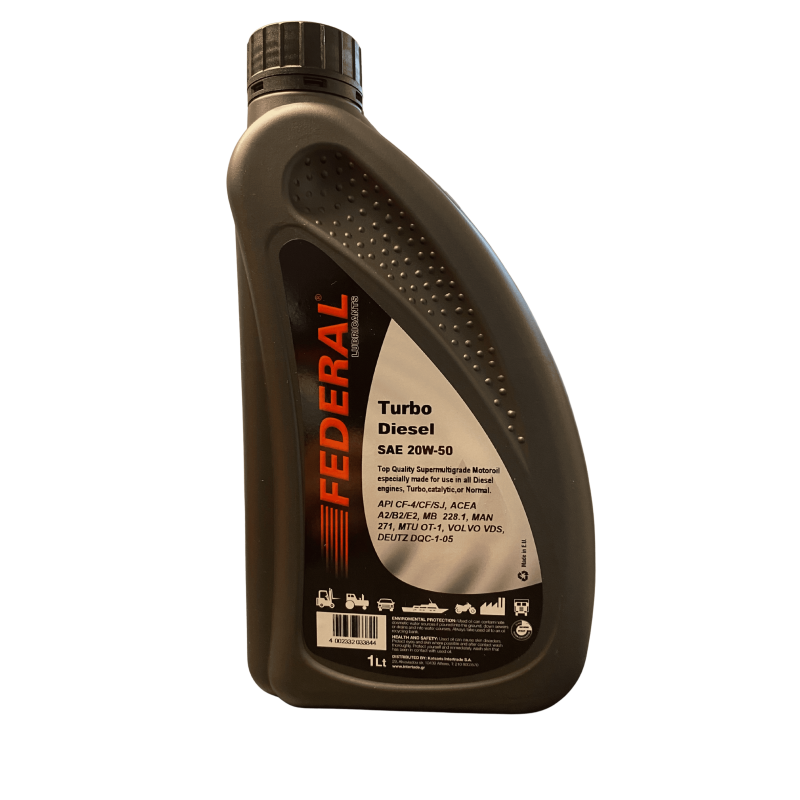 Αναζητάτε το ιδανικό λάδι για τον κινητήρα του αυτοκινήτου σας; Το λάδι Federal Turbo Diesel 20W-50 είναι η κατάλληλη επιλογή για όσους διαθέτουν κινητήρα πετρελαίου. Είναι ειδικά σχεδιασμένο για να ανταποκρίνεται στις απαιτήσεις λειτουργίας και λίπανσης, υπό μεγαλύτερες καταπονήσεις και πιέσεις.