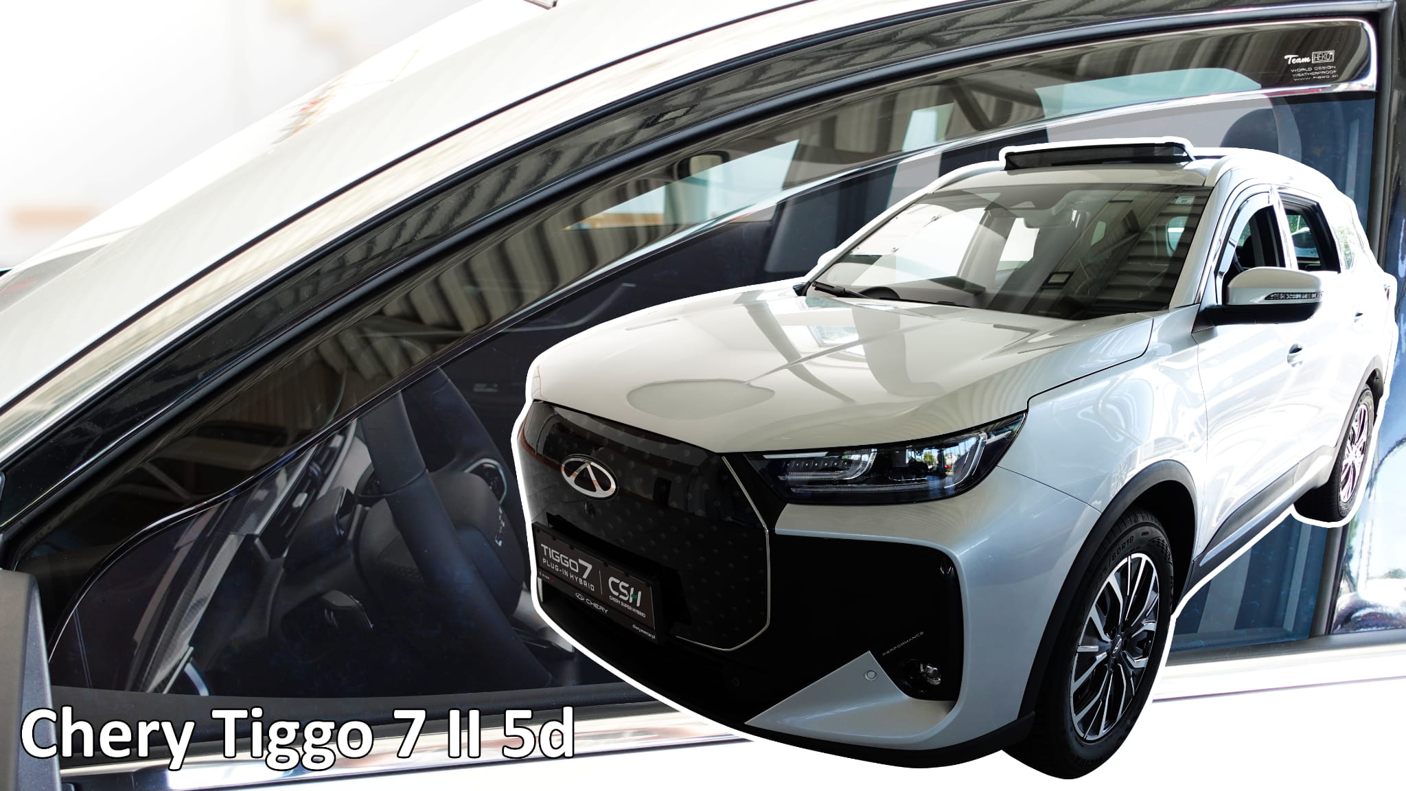 Ανεμοθραύστες παραθύρων για Chery Tiggo 7 II Gen 2020. Κατασκευασμένοι από ακρυλικό υλικό με φιμέ χρώμα. Το προϊόν περιλαμβάνει 2 τεμάχια (κωδικός ΑΝΕΜ.10803).