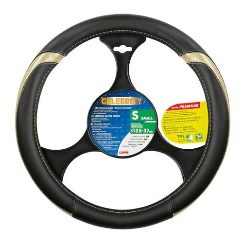 Το κάλυμμα διαθέτει μεταλλιζέ πλαστικοποιημένο σχέδιο σε χρυσό χρώμα, προσφέροντας κομψό στυλ στο εσωτερικό του οχήματός σας. Ιδανική λύση για την προστασία του τιμονιού σας από φθορές που μπορεί να προκληθούν από την τριβή κατά τη χρήση, καθώς και για τιμόνια που ήδη έχουν φθαρεί.