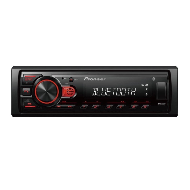 Το Pioneer MVH-230BT διαθέτει λειτουργία Bluetooth για απάντηση κλήσεων και αναπαραγωγή μουσικών αρχείων MP3, WMA, WAV και FLAC από το κινητό σας.
